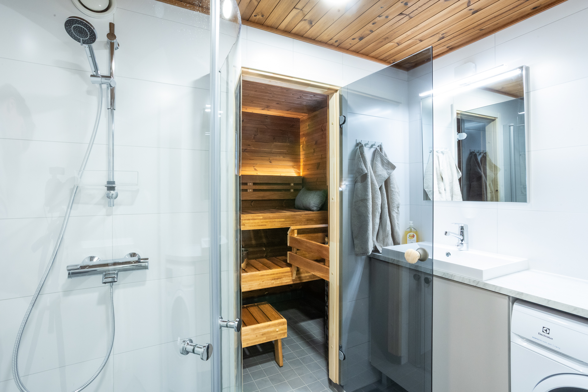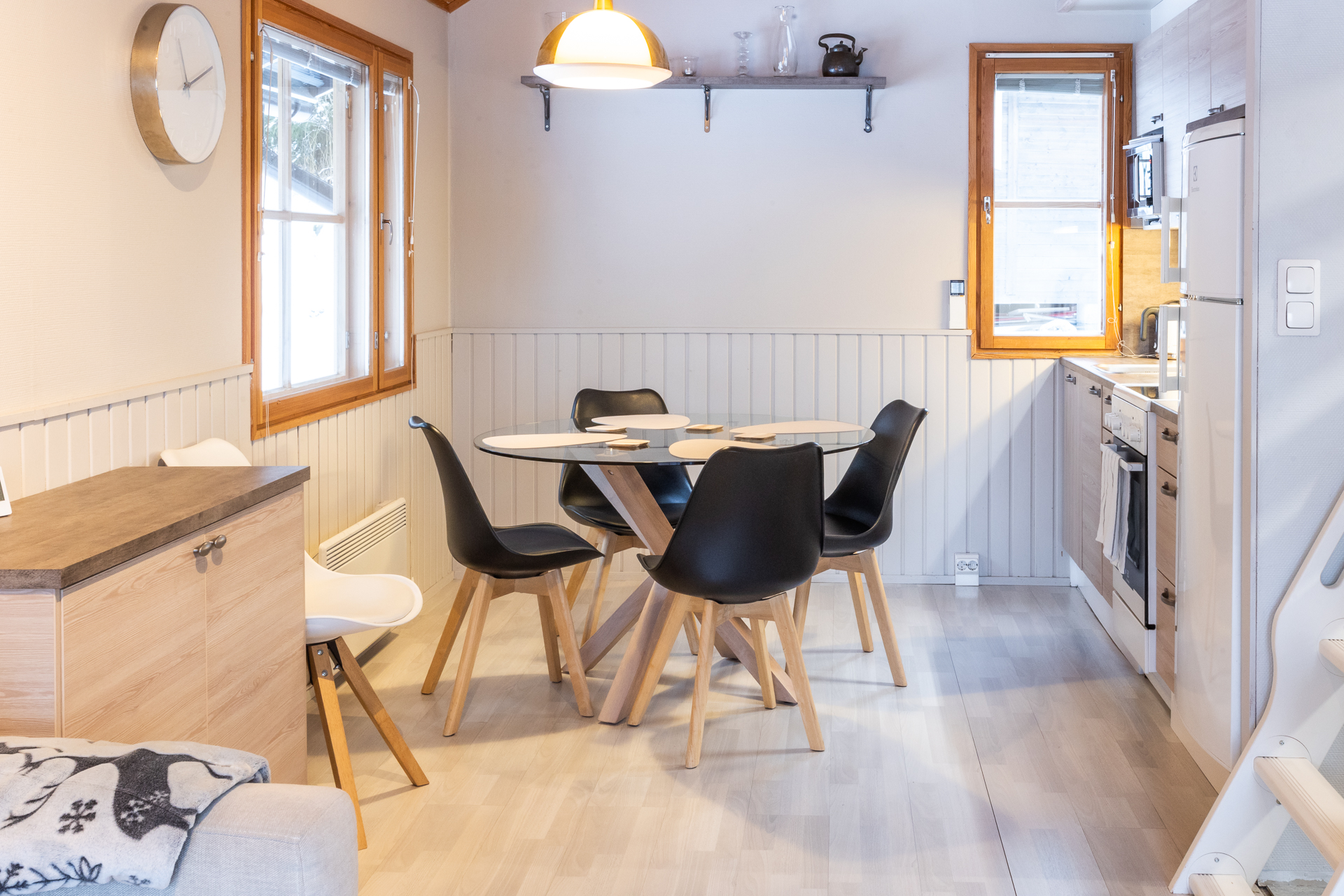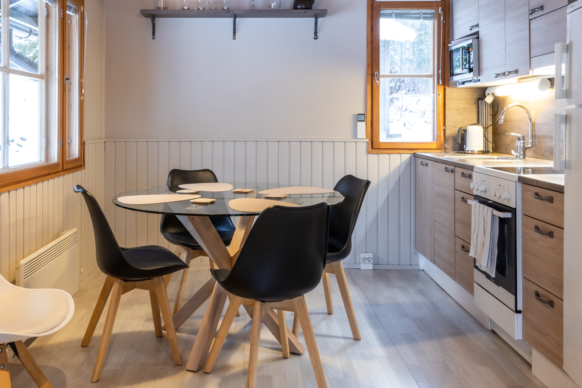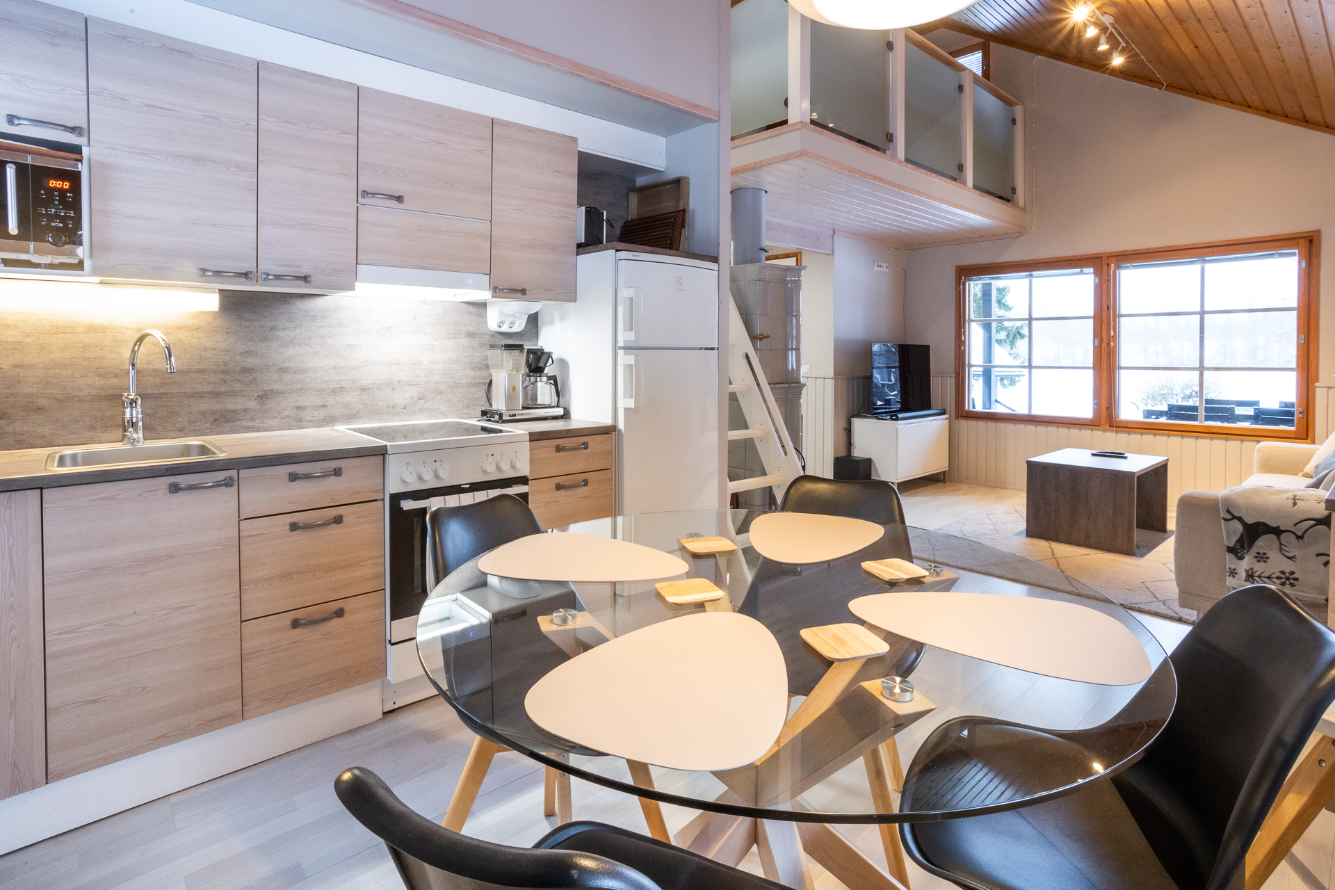 Mökissäsi on täysin varusteltu keittiö, jossa on keraaminen liesi, astianpesukone, jääkaappi/pakastin, pyykinpesukone, mikroaaltouuni, kahvinkeitin, vedenkeitin, hiustenkuivaaja, leivänpaahdin, silitysrauta ja -lauta sekä pölynimuri. Astiat kuudelle hengelle. Tv ja nopea WiFi. Lisäksi mökillä on käytettävissä kaasugrilli ulkogrillausta varten.