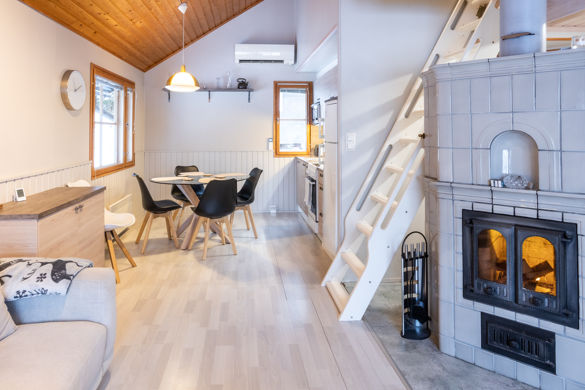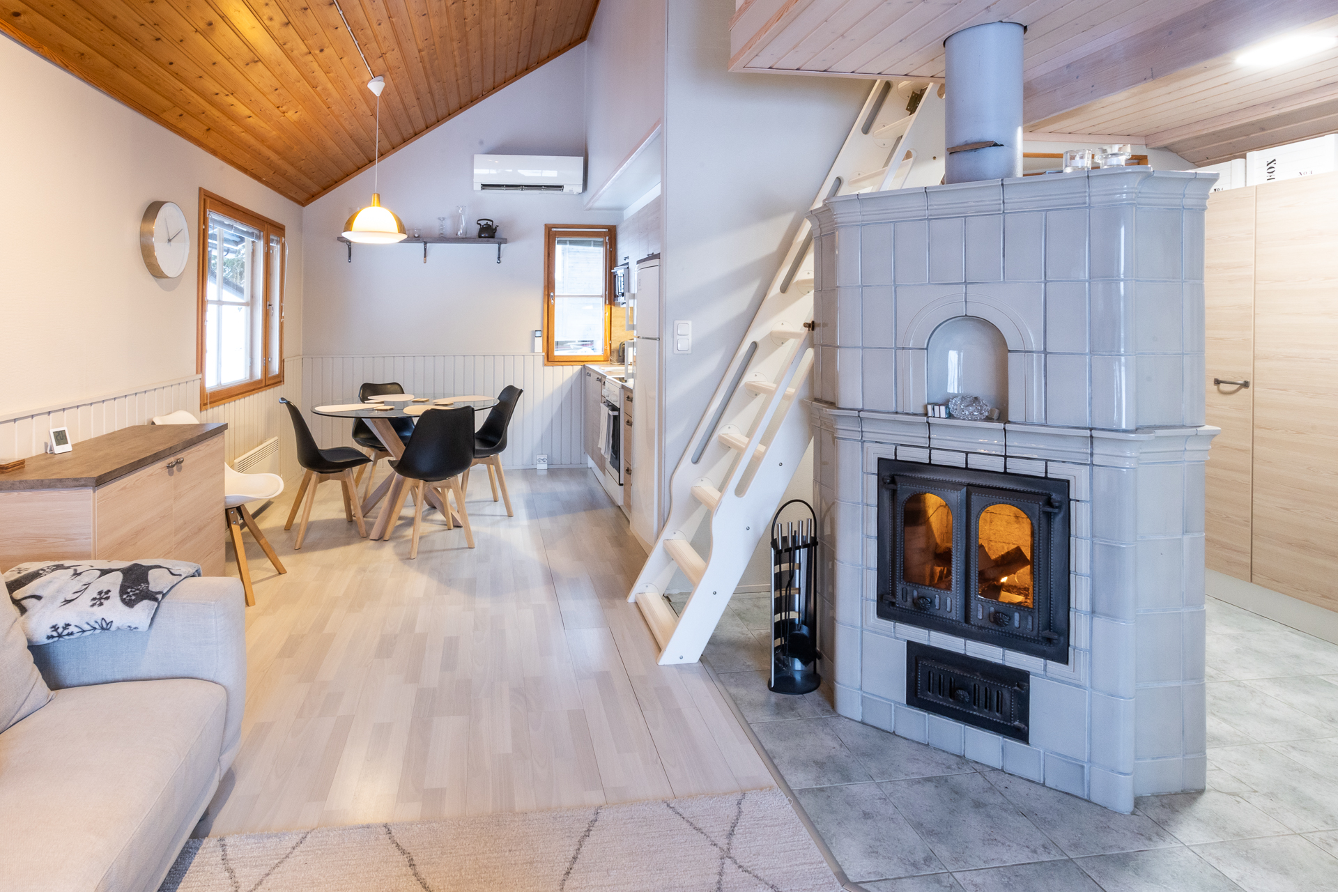Mökkimme on varusteltu tarjoamaan miellyttävää oleskelua ympäri vuoden. Ilmalämpöpumppu viilennystoiminnolla ja takka luovat mukavan lämpötilan, oli vuodenaika mikä tahansa.